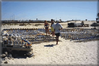 ![]() Keramikverkauf am Strand: Überall bieten die Händler ihre Keramikwaren feil. Doch Vorsicht: auch hier wird gefeilscht. |